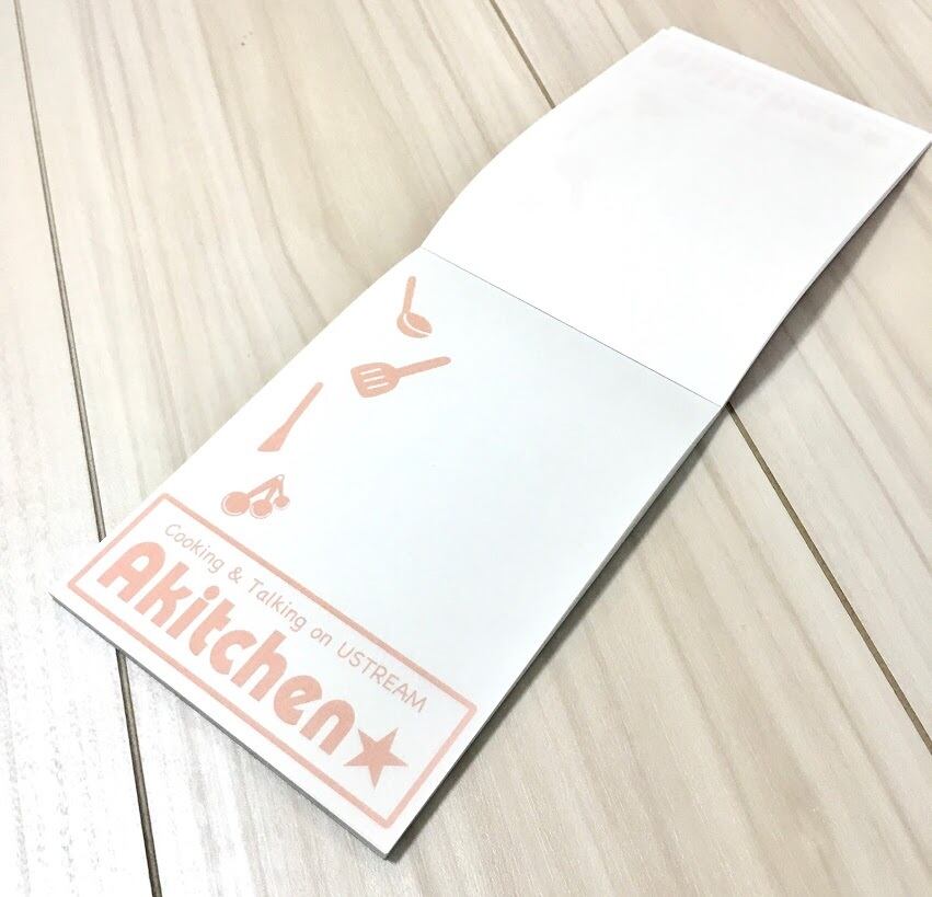 Akitchen☆メモ帳。全ページにデザイン入り。 ちょっとした仕事のメモや趣味のメモ。 レシピのメモなどにも。人に渡しても恥ずかしくない適度にシンプルなデザイン